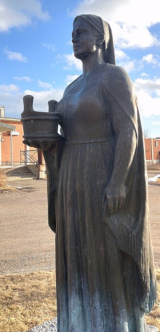 Louhi was the maiden from Pohjola who would not agree to marry any man. When she was suffering from heat, she went to cool off in water. There, she was impregnated by waves caused by a sea giant. She gave birth to nine sons, the Nine diseases, and one daughter (in some versions, Syöjätär). Christianized versions of the runosong here include Louhi trying to get John the Baptist to baptize her children but he refuses, calling her a harlot. Louhi's children were, of course, born outside of marriage, but many researchers believe the runosongs started calling her a harlot and a whore only later due to Christian influence. (: She then proceeds to name them after various diseases and disasters.